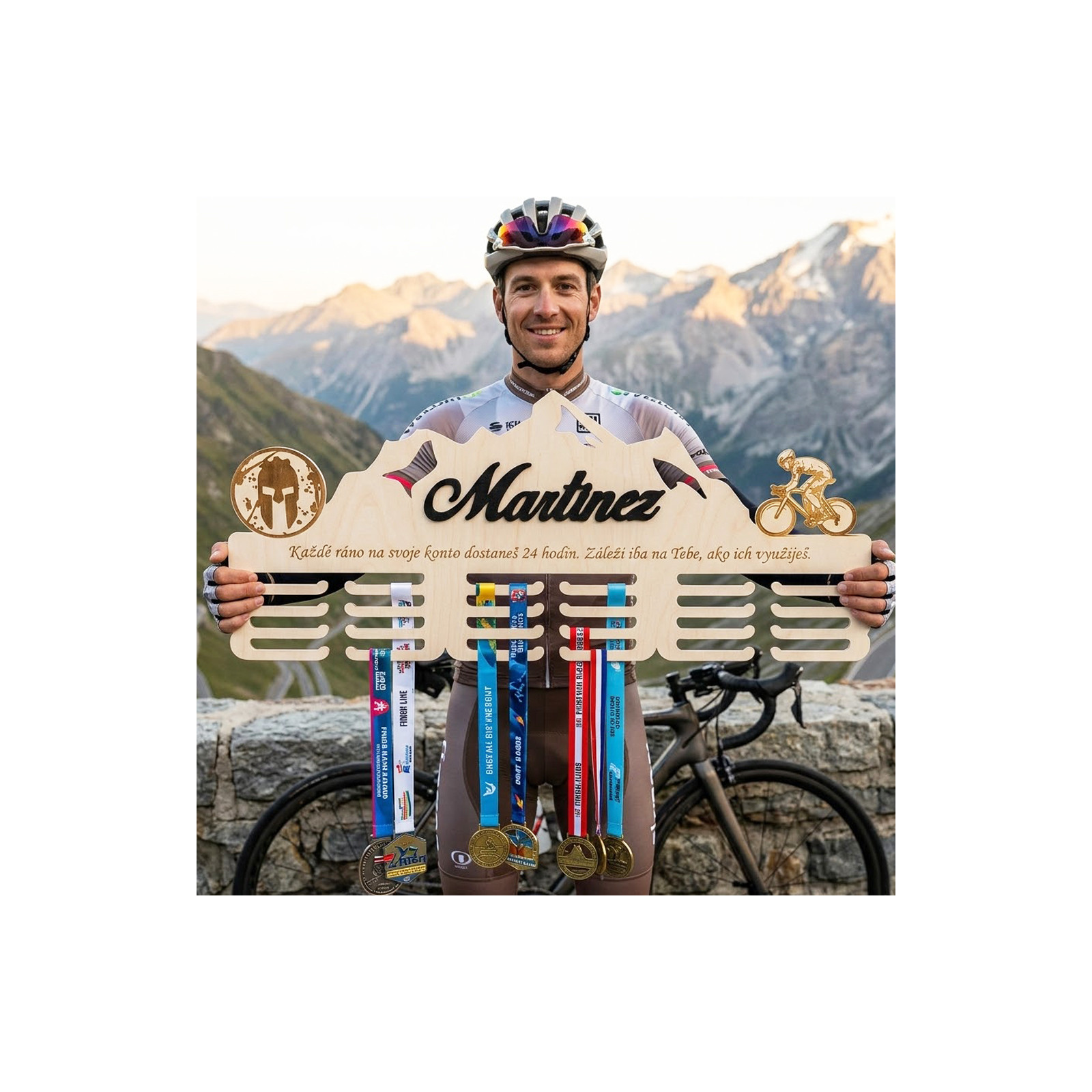 Věšák umíme vyrobit i s jinými motivy: cyklistika a Sparťan. Ať už jste vášnivý cyklista nebo obdivovatel spartských bojovníků, určitě si vyberete ten správný motiv, který nejlépe vystihuje váš sportovní duch.