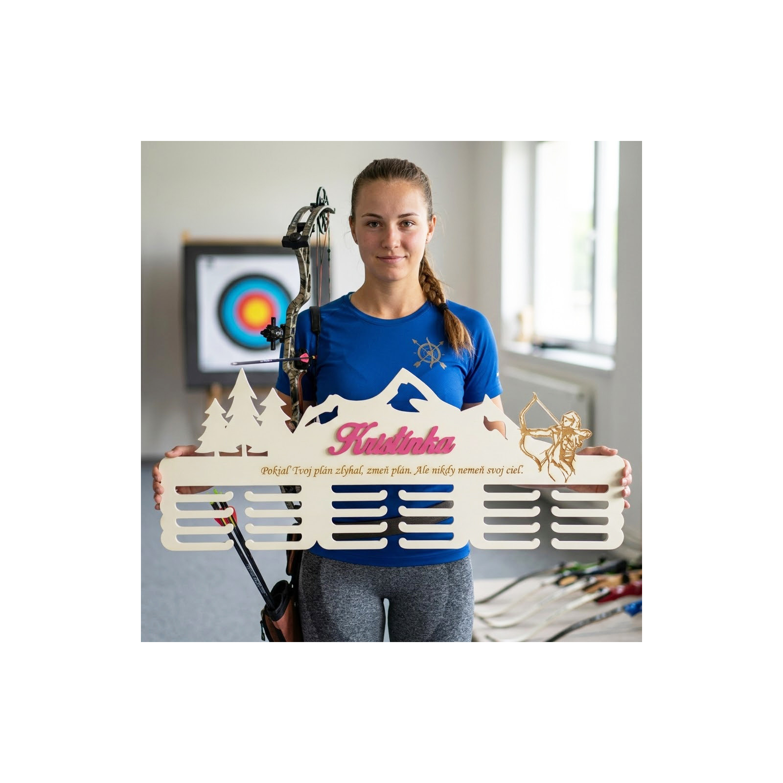 Dřevěný věšák na medaile: Oslava vášně pro přírodu a lukostřelbu
