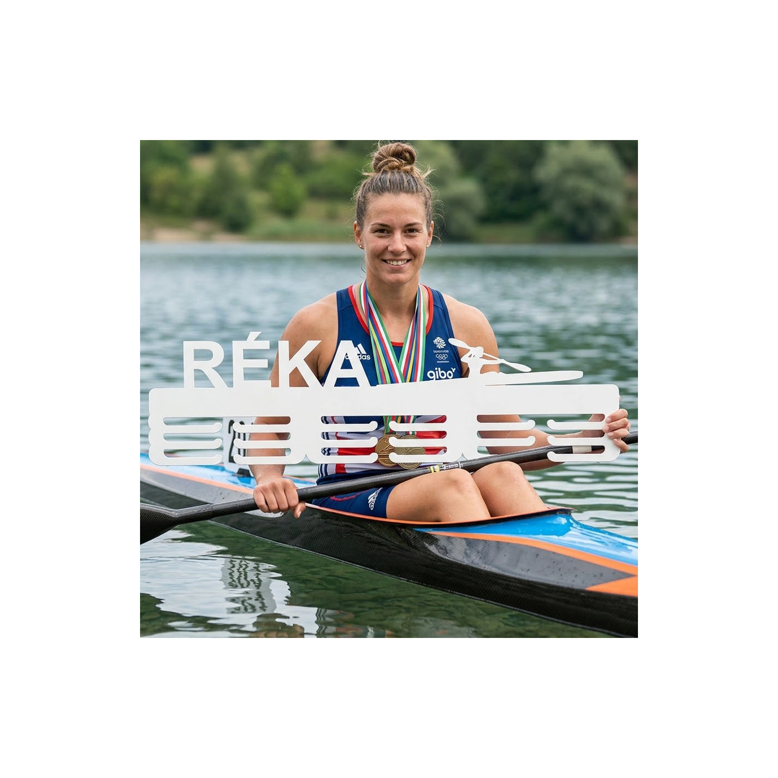 Představte si, že přijíždíte domů po náročném tréninku nebo úspěšných závodech a vaše cenné medaile neskončí jen tak poházené v krabici. Teď mohou mít svoje čestné místo na stylovém 80 cm dřevěném věšáku na medaile, který je navíc personalizovaný vaším jménem a motivem kajaku!