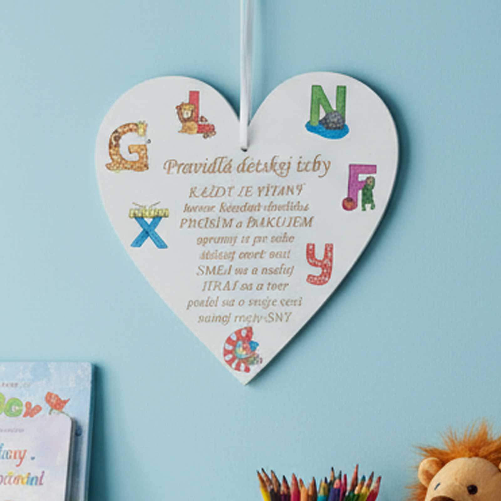 Srdíčko 17 cm - Pravidla dětského pokoje veselá písmenka