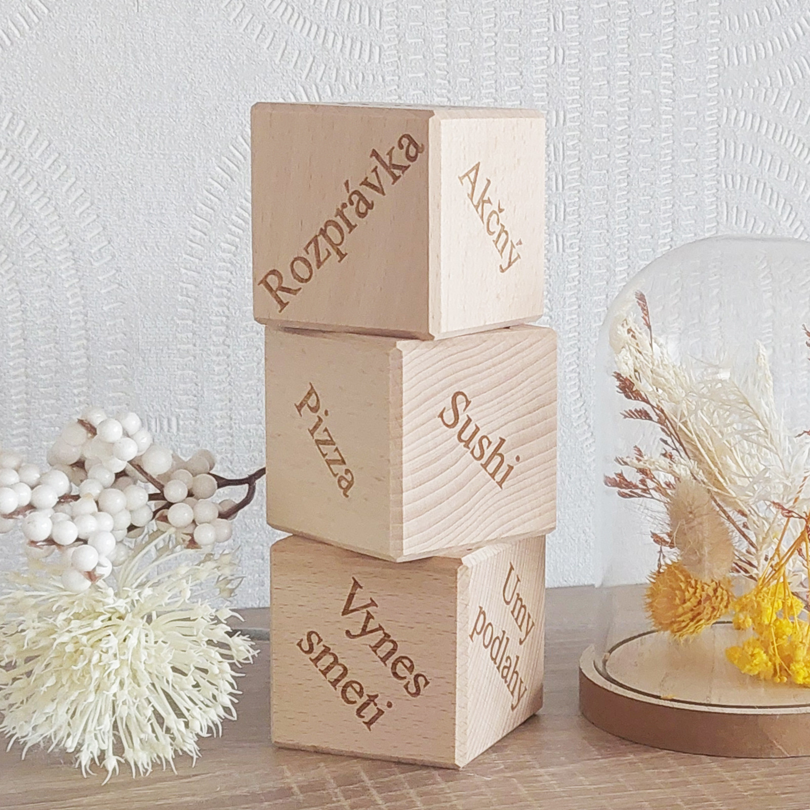 Naše buková šestihranná kostka není jen kusem pěkně opracovaného dřeva. Je to váš osobní „generátor filmové pohody“. S rozměry 5,5 cm padne přesně do ruky a zábava může začít.