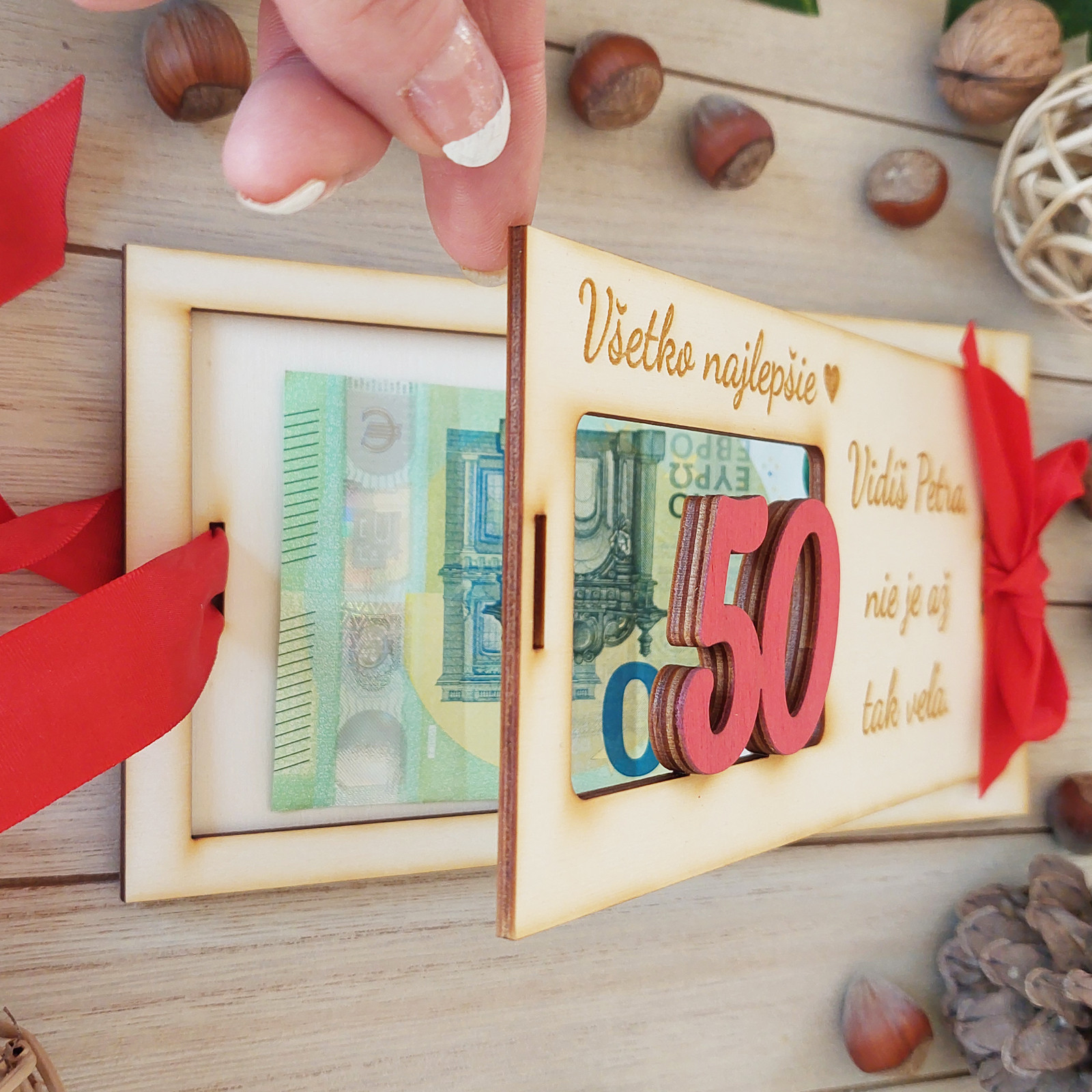 Dřevěná obálka na peníze 20x10cm vidíš 50 není až tak mnoho.