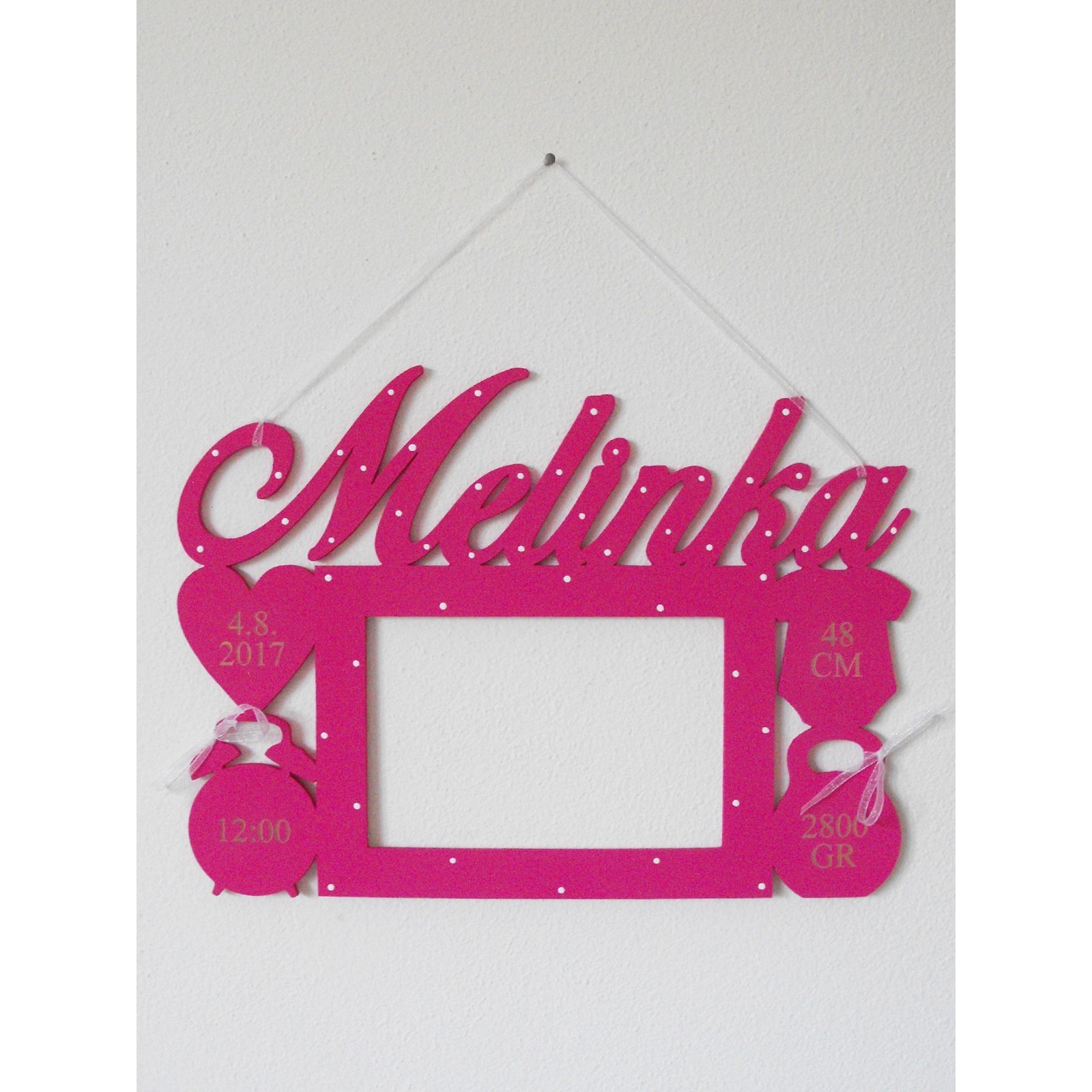 Dřevěný fotorámeček dárek pro děťátko barva maženta