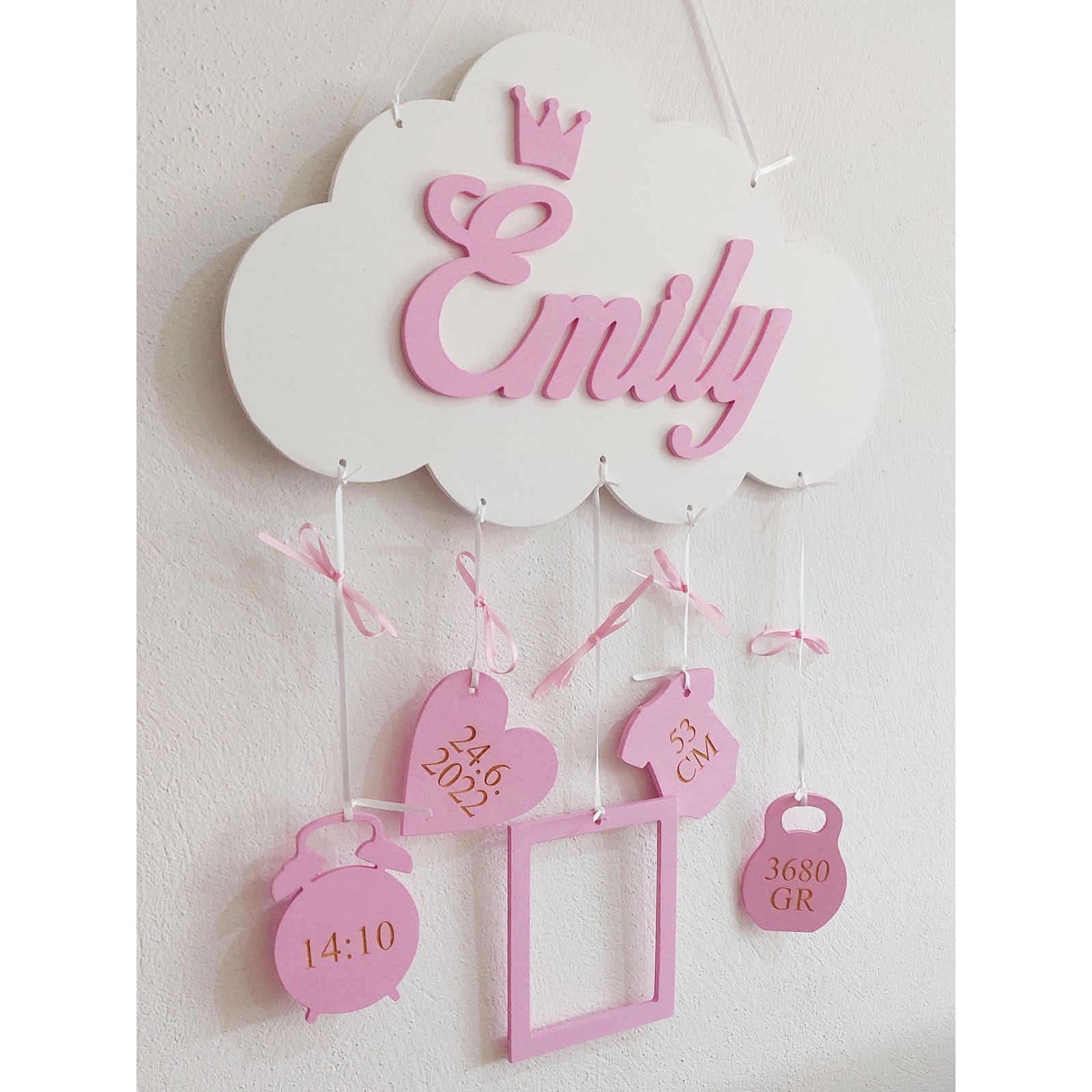 Na míru vyrábím dřevěná jména na obláčku před dětičky se zavěšenými údaji o narození.