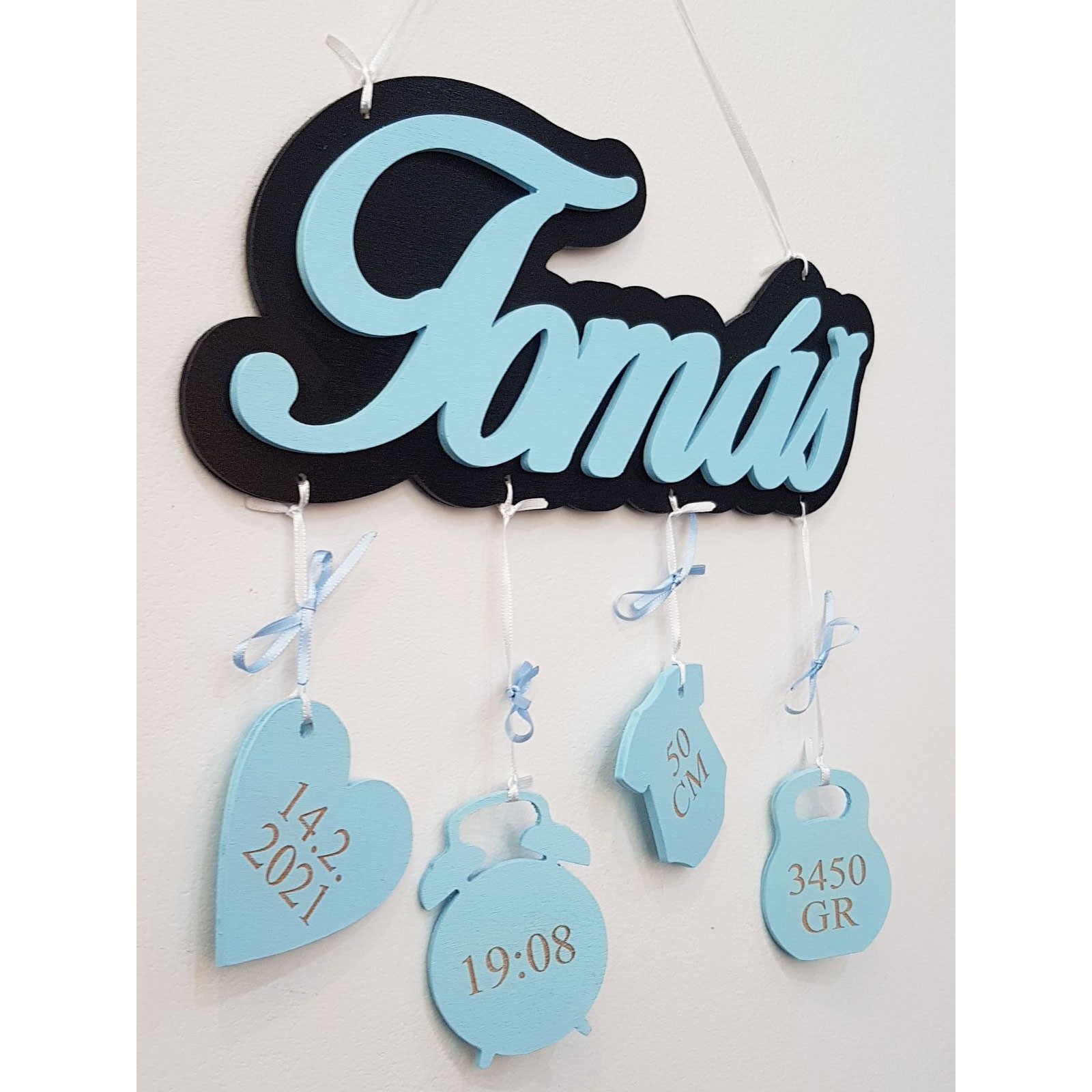 Na míru vyrobíme i jiná jména děťátka se zavěšenými údaji o narození: Datum - Čas - Délka - Váha.
