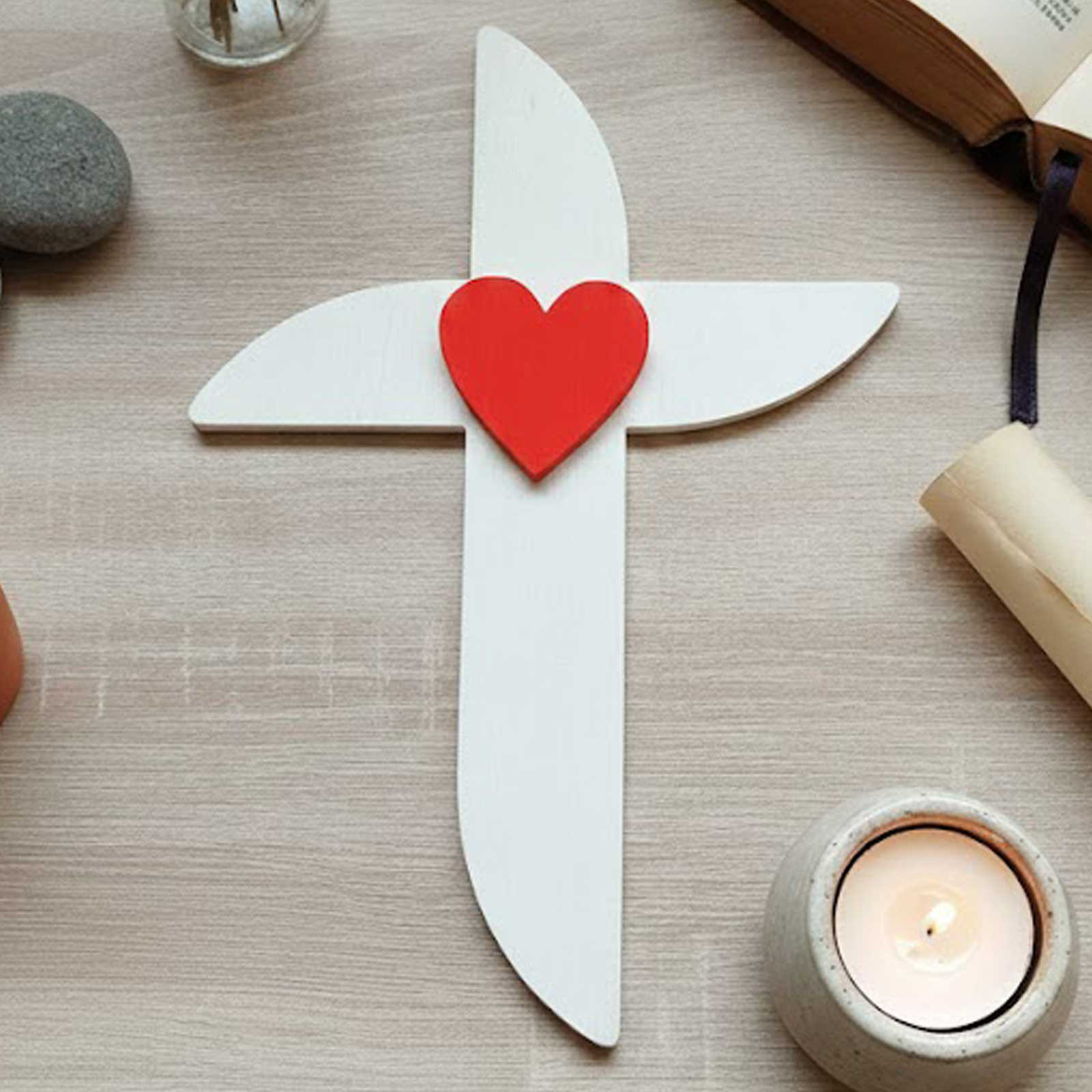 Kříž na zeď zaoblený s srdíčkem 30 cm