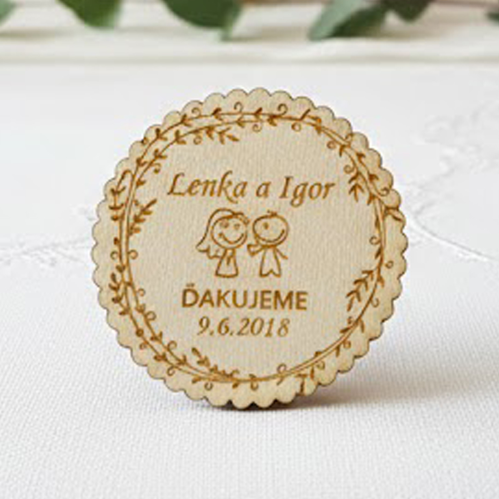 - Jména nevěsty a ženicha a datum svatby: Klasický a elegantní design, který hostům připomene váš svatební den.