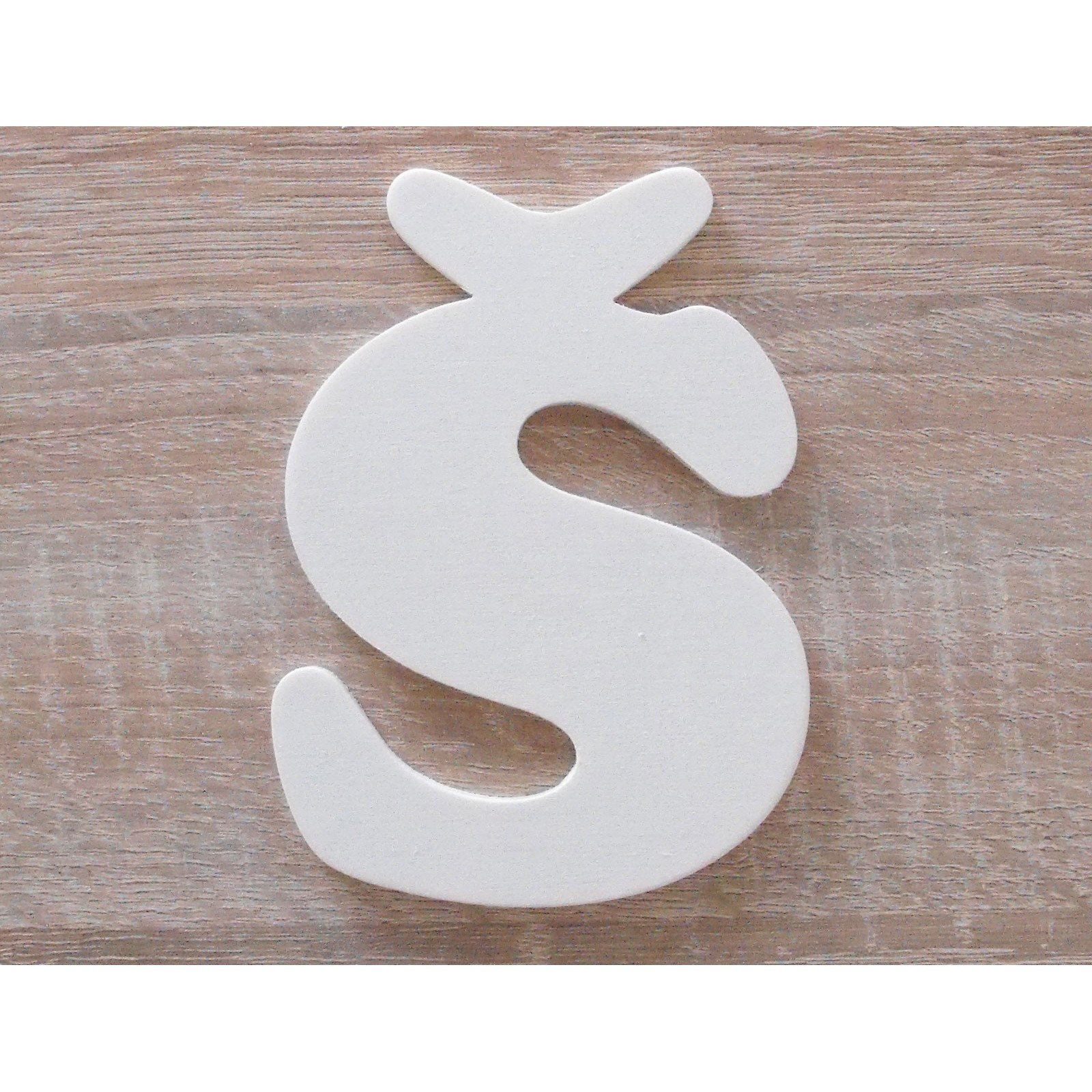 Písmeno je vyrobeno z dýhy o tloušťce 4 mm. Lze jej pověsit. Jakýkoli další tvar lze vytvořit pomocí různých kreativních technik (decoupage, decopatch atd.) nebo akrylovými barvami.