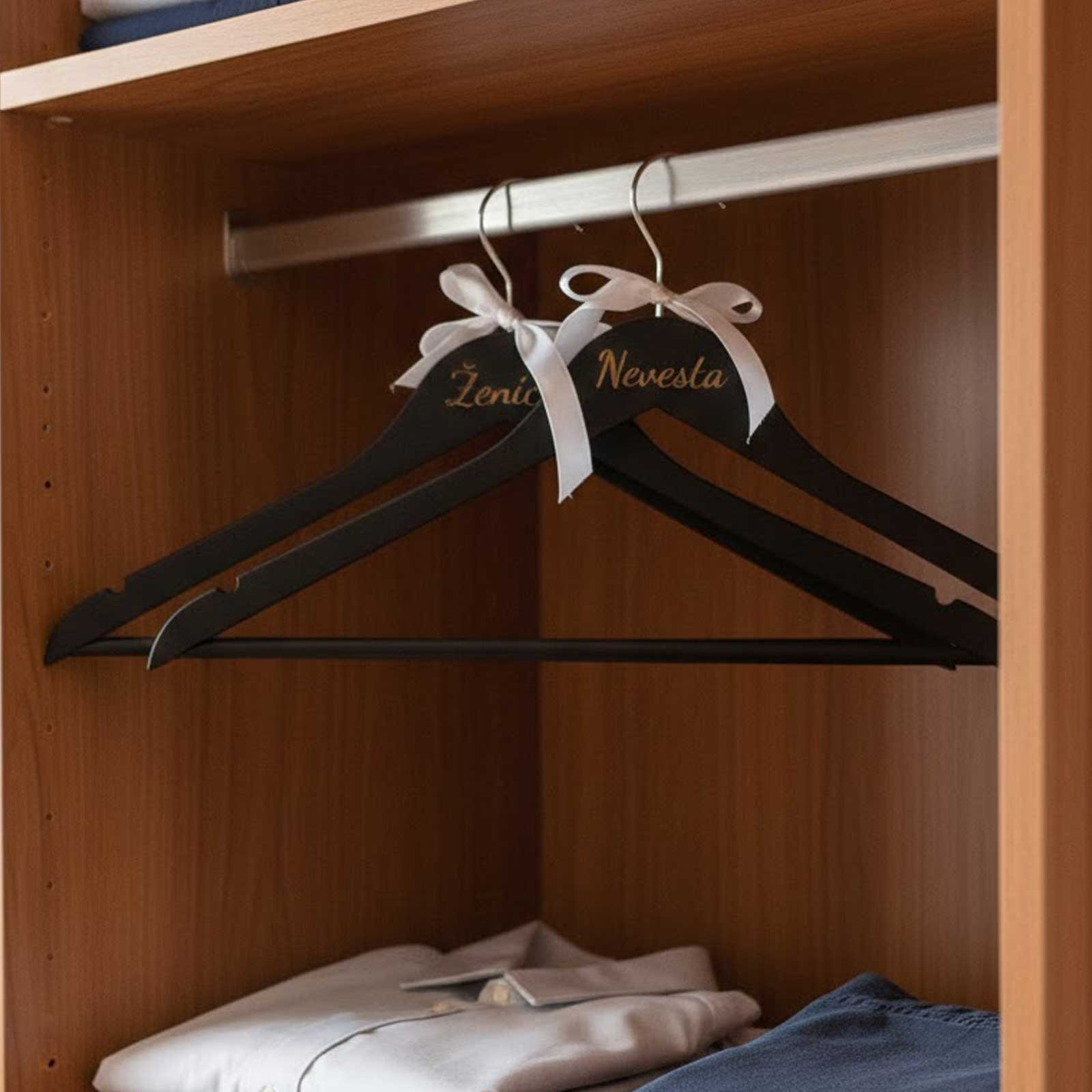 - Osobní dotek: Nápisy „nevěsta“ a „ženich“ na věšácích symbolizují spojení dvou srdcí a připomínají vám, že tento den patří jen vám dvěma.