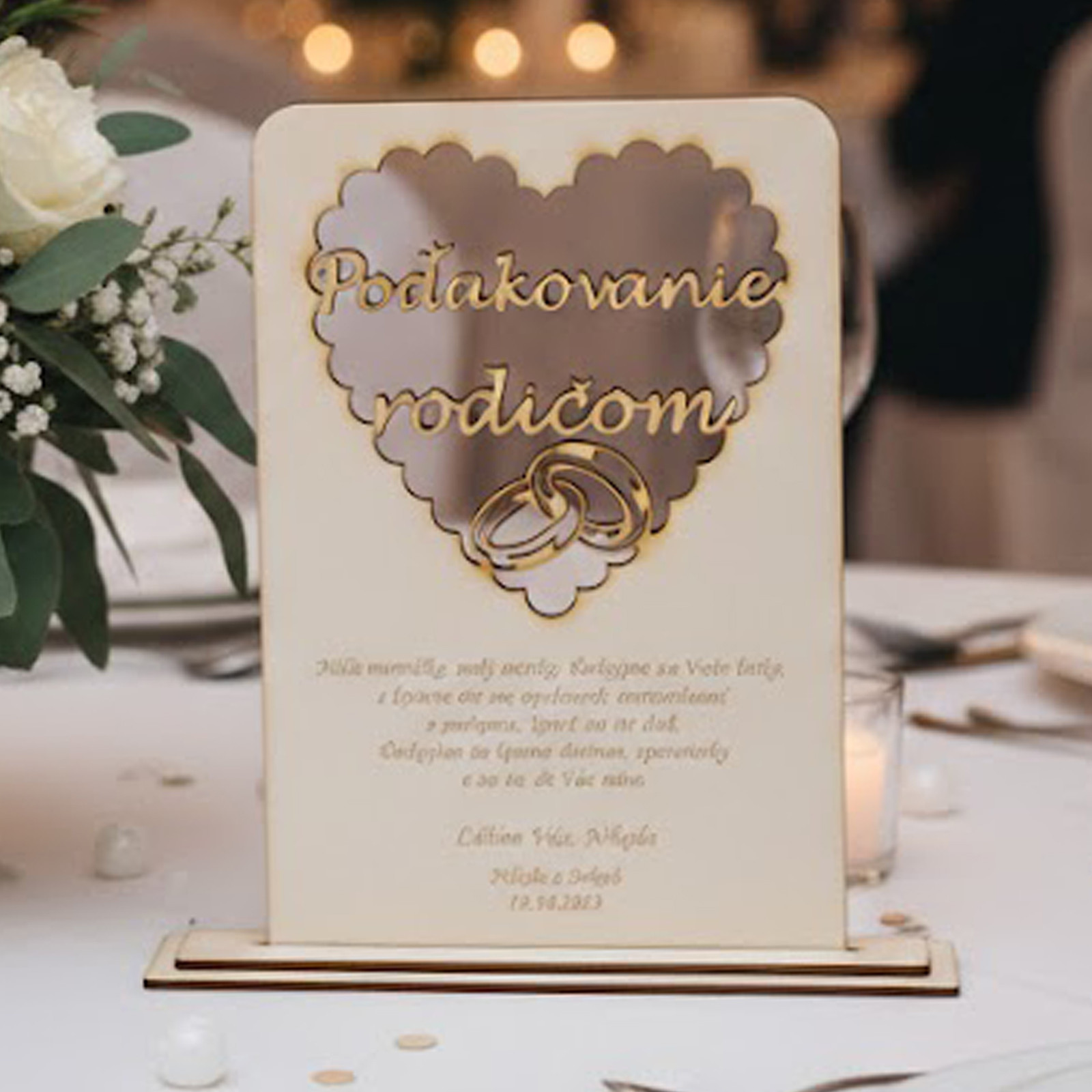 Hledáte způsob, jak vyjádřit svou vděčnost rodičům za jejich lásku, podporu a obětavost? Dřevěné poděkování se stojanem je nejen krásnou dekorací, ale také trvalou připomínkou vaší lásky a úcty.