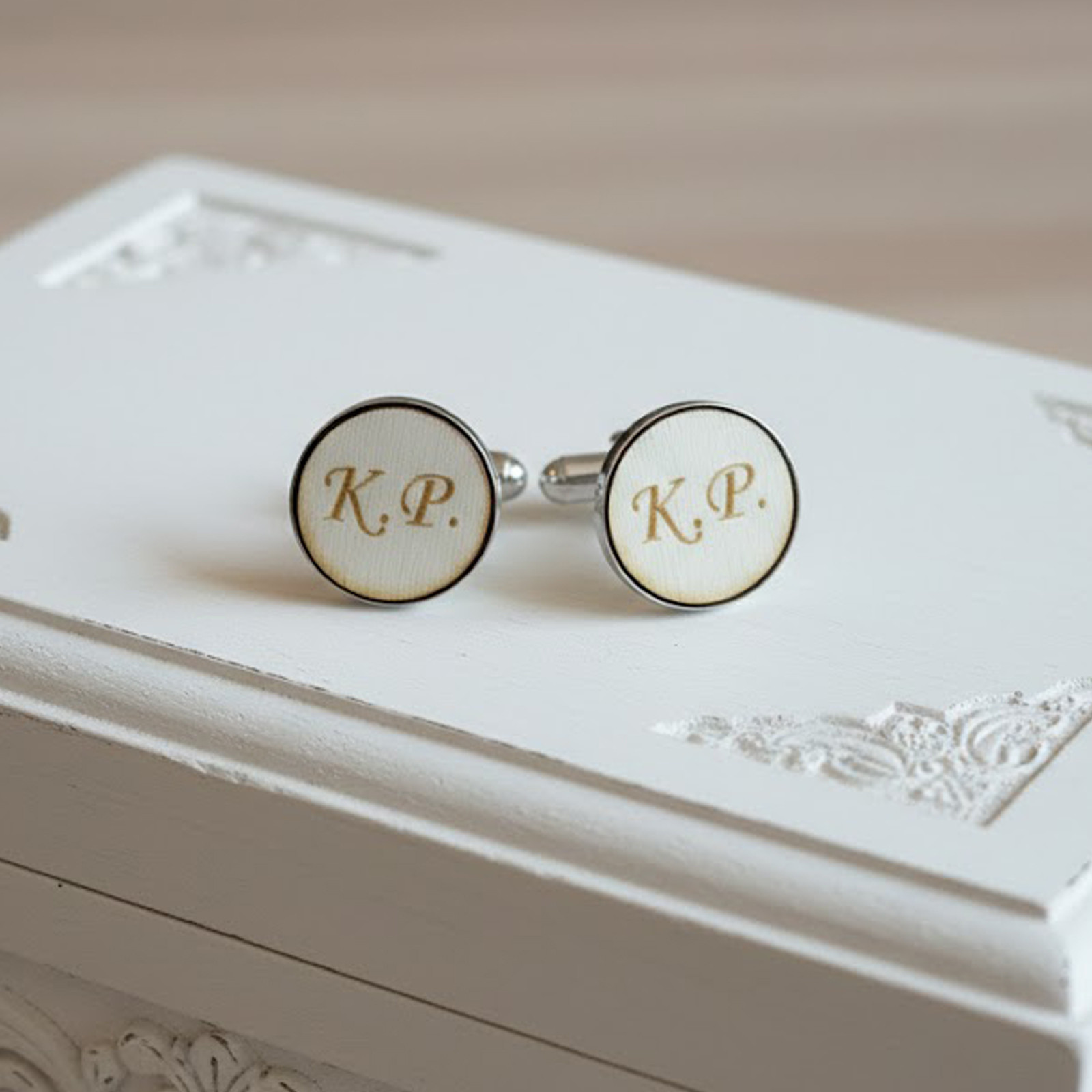 Moderní pánské manžetové knoflíčky se iniciálami jsou vyrobeny na míru.