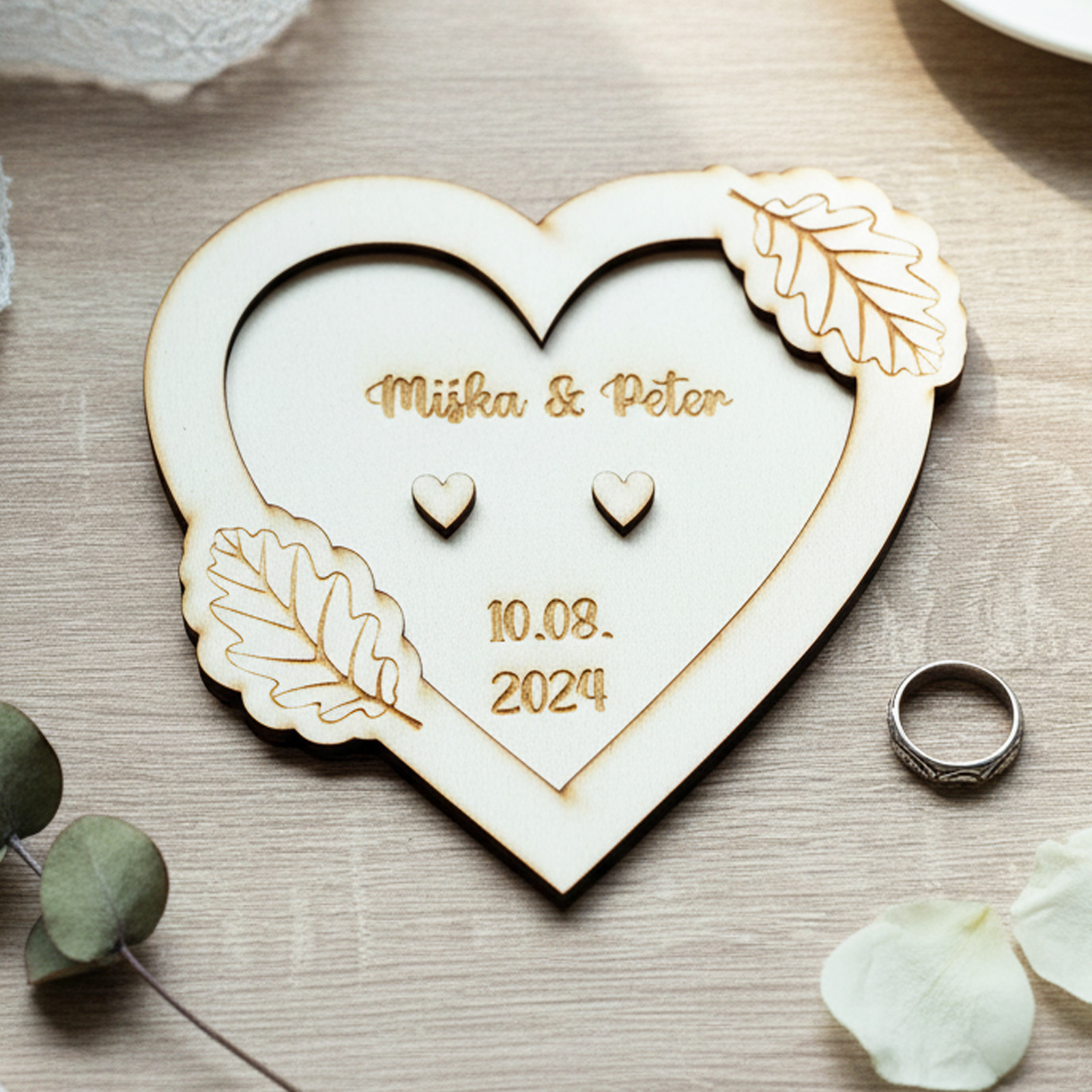 Svatební podnoska na svatební prstýnky s jmény list