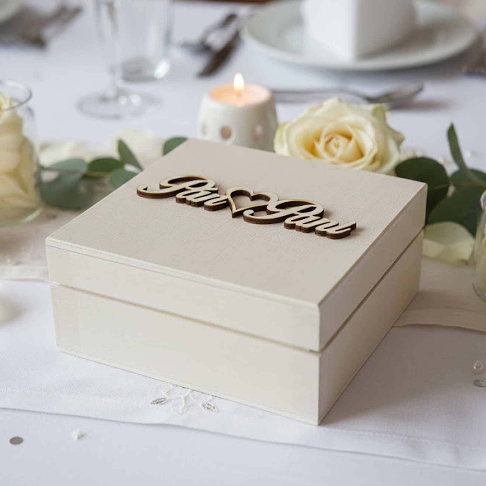 Jestliže hledáte krabičku, která by vyjádřila vaši lásku a oddanost, poté je krabička s nápisem "Pan a Paní" tou pravou volbou. Tento nápis je klasický a nadčasový, a proto bude skvělou volbou pro jakýkoliv svatební styl.