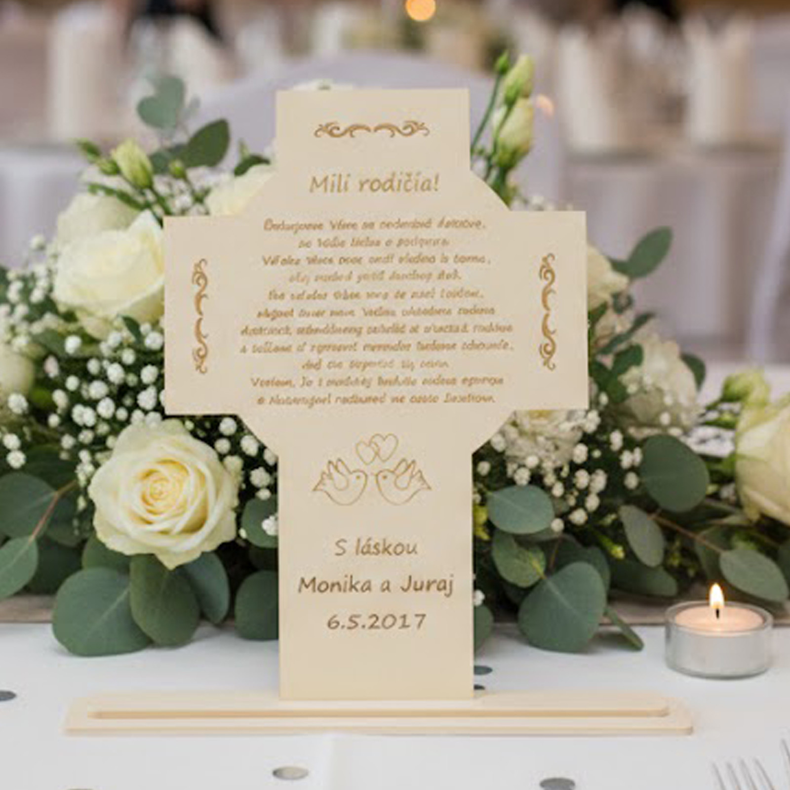 Kříž je tradičním symbolem víry, naděje a lásky. V tomto kontextu představuje nejen vděčnost za život a výchovu, ale také uznání duchovních hodnot, které vám rodiče předali.