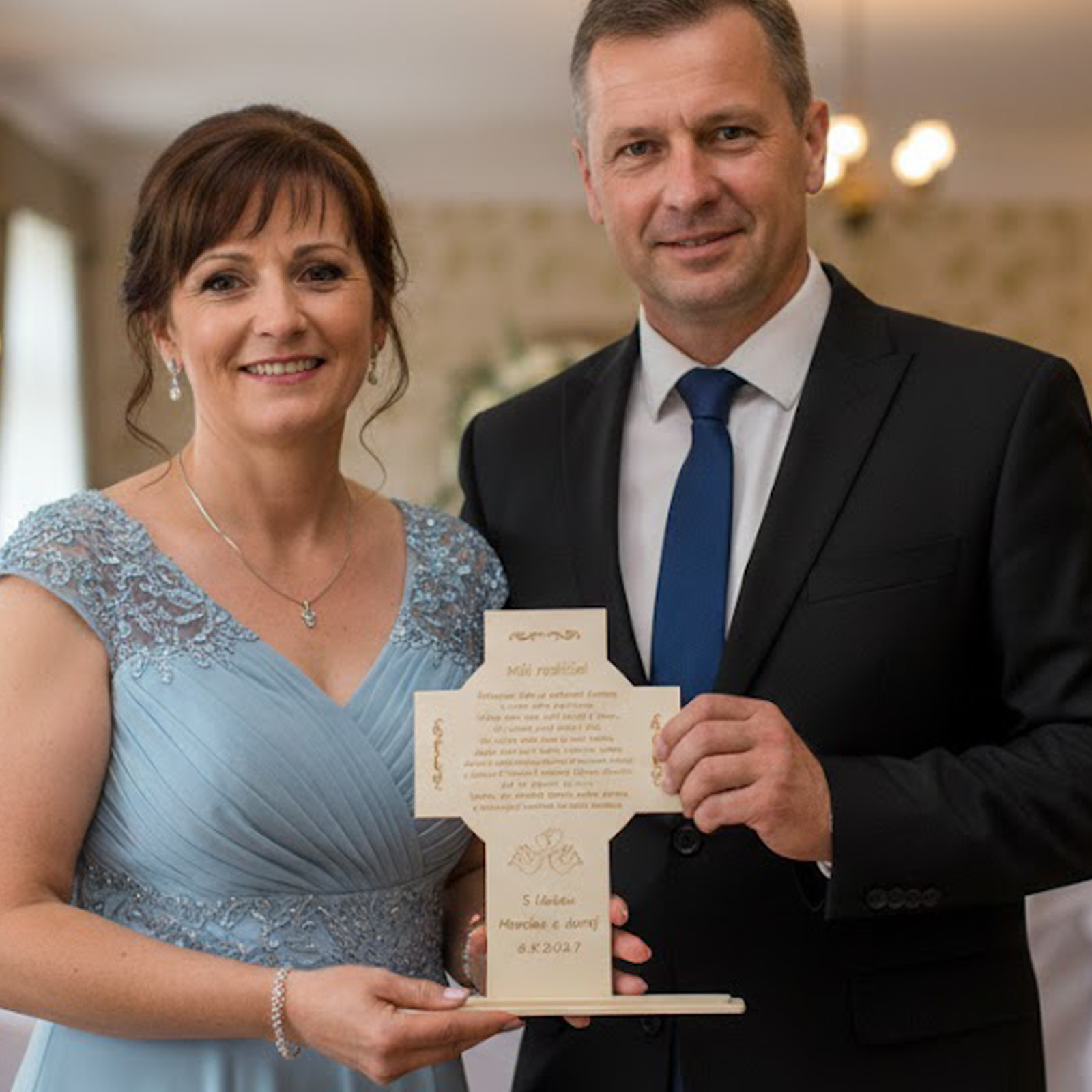 Pro ještě osobnější dotyk je možné dekoraci personalizovat. Můžete na ni nechat vygravírovat jména vašich rodičů, datum svatby, křtu nebo jiné významné události, či krátký citát vyjadřující vaši vděčnost.