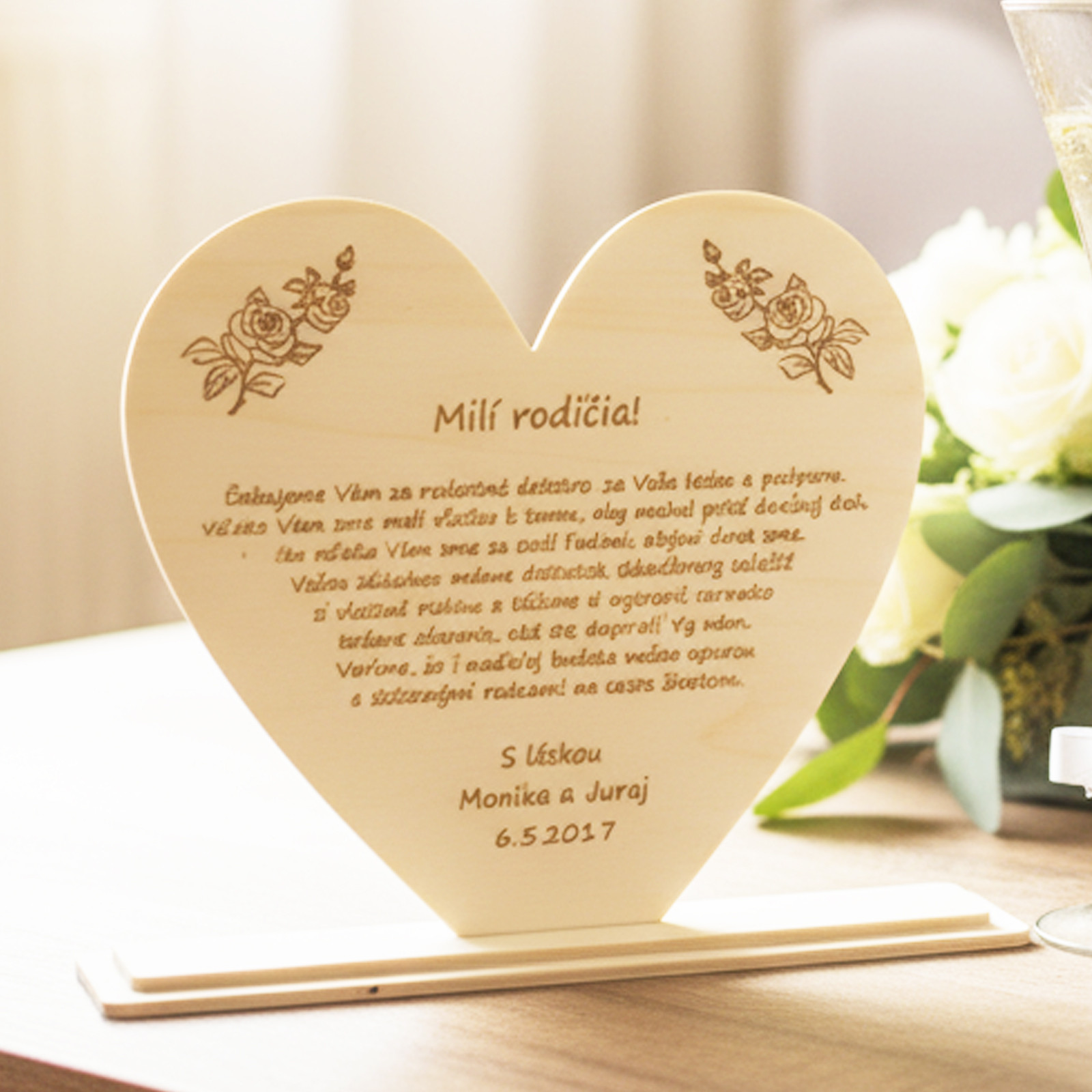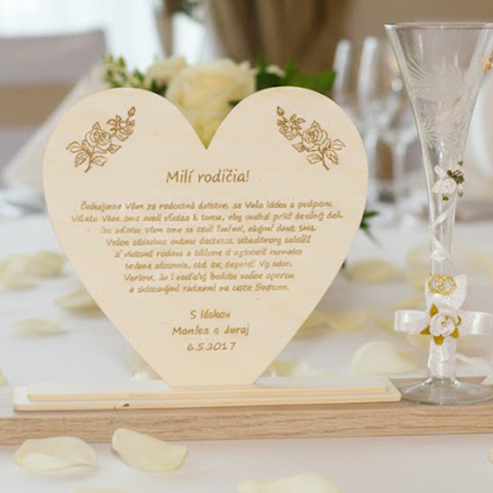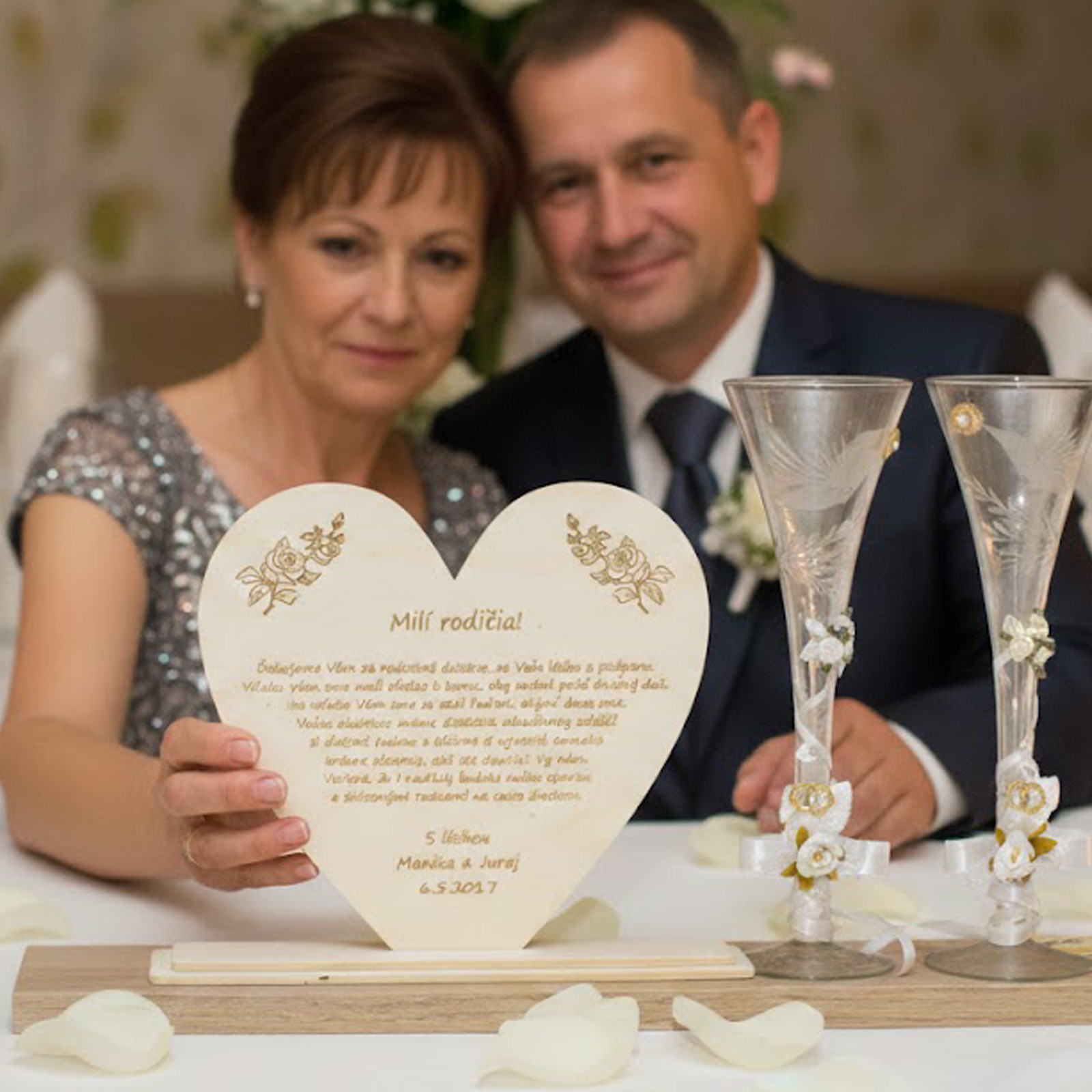 Srdce věnované rodičům na památku a z vděčnosti na svatební den.