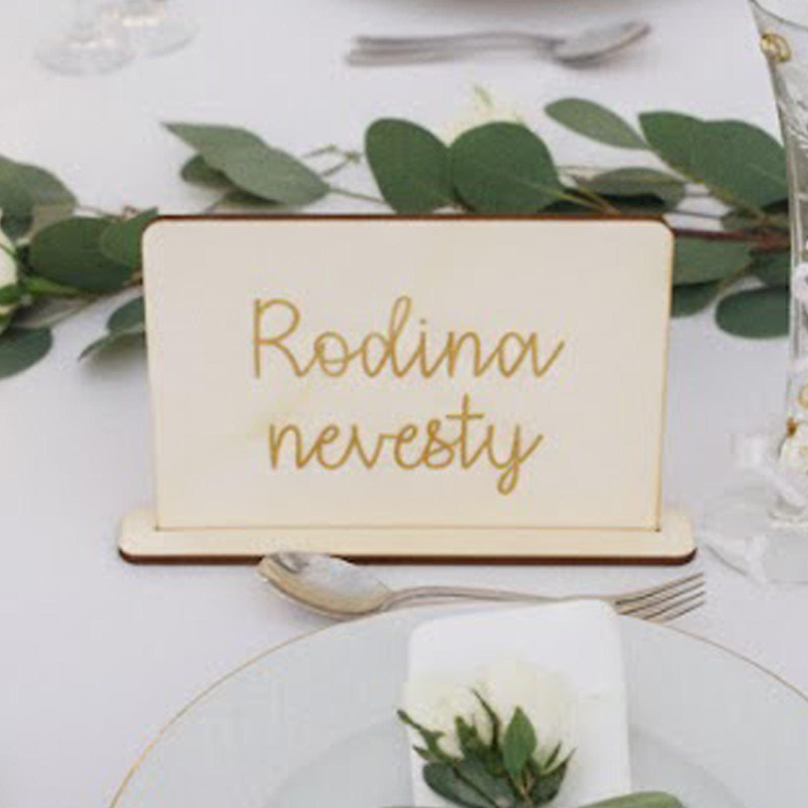 Z topolové překližky tloušťka 3mm na které je vygravírován nápis ,,Rodina nevěsty".