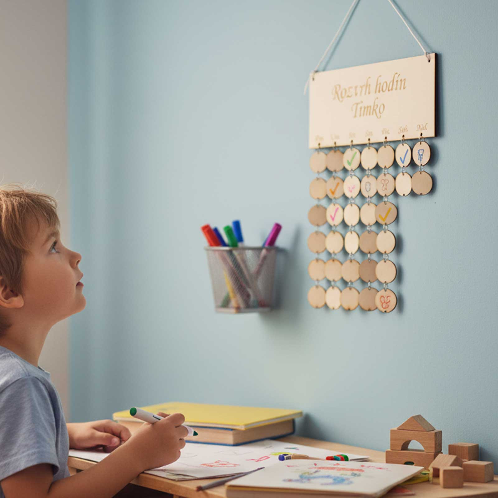 Trvácnost: Na rozdíl od papíru tento rozvrh vydrží celé roky. Stačí vyměnit kroužky nebo dopsat nové předměty.