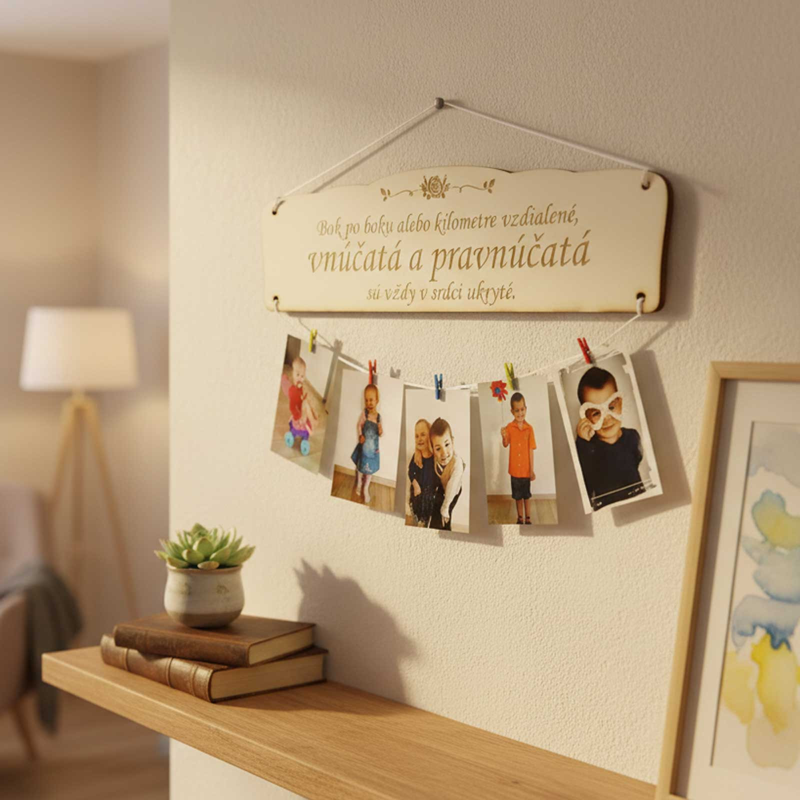 Hledáte originální a sentimentální dárek pro babičku, prababičku nebo jiného milovaného člověka? Dřevěná cedule "bok po boku" s fotkami vnoučat a pravnoučat je přesně to, co hledáte. Tato personalizovaná dekorace vytvoří nezapomenutelnou vzpomínku a krásně ozdobí každý interiér.
