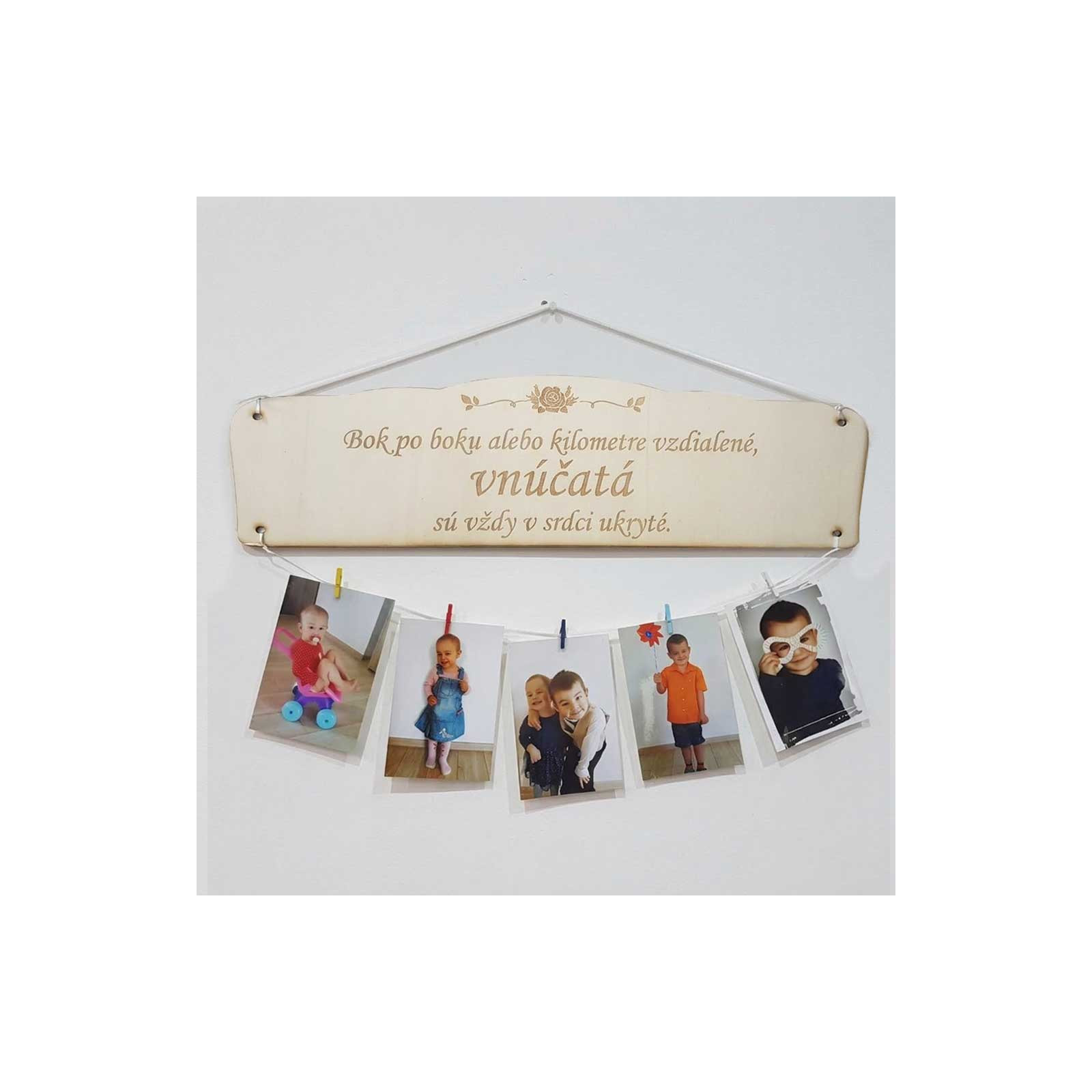 Dřevěná tabulka bok po boku vnoučata 550x15x3mm z překližky s citátem.