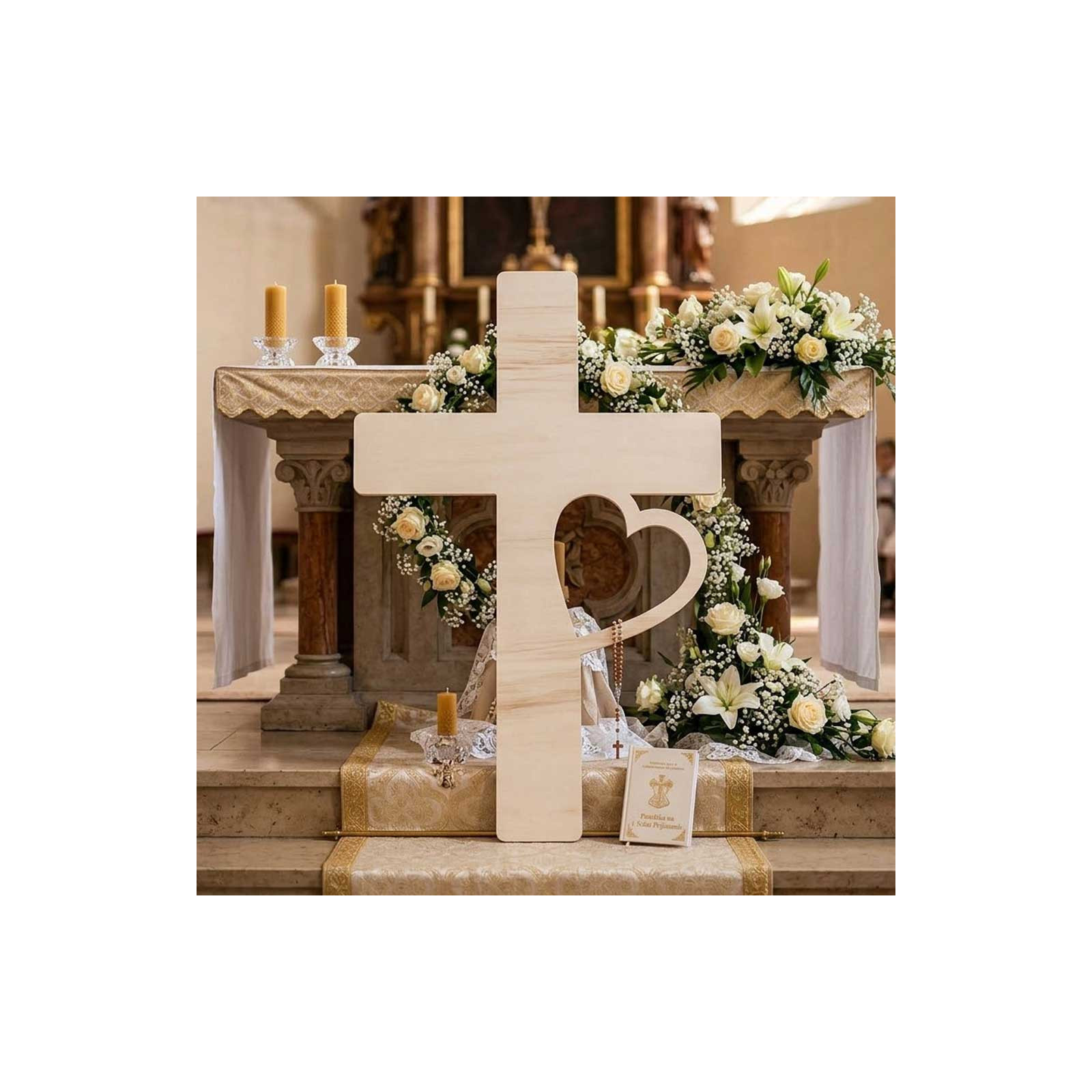 Kříž je univerzálním symbolem víry a oběti, ale v kombinaci se srdcem získává nový rozměr – rozměr nekonečné lásky a milosrdenství. Při výšce 73 cm je tento kříž dostatečně dominantní k tomu, aby se stal centrálním bodem výzdoby při: