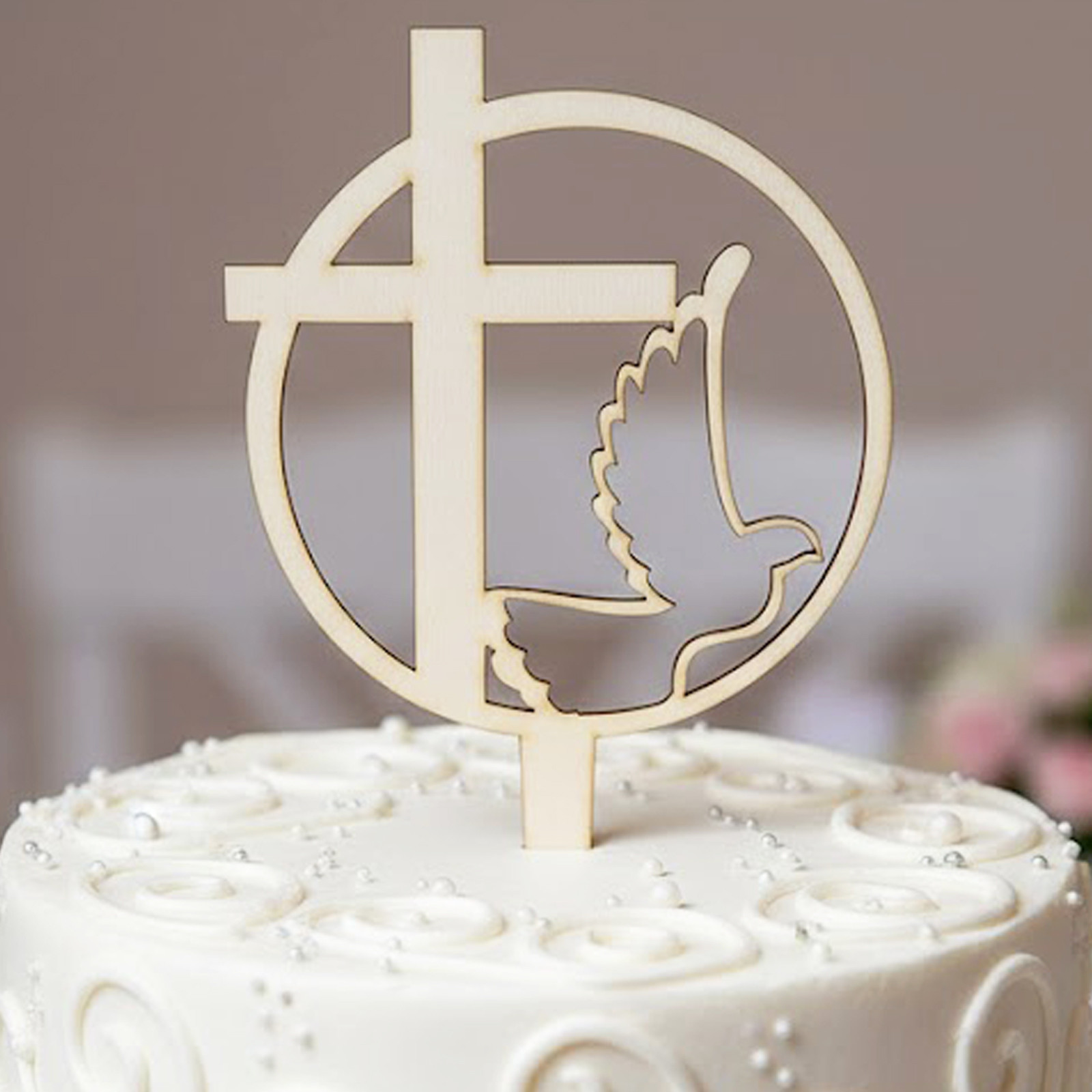 Hledáte originální způsob, jak ozdobit dort nebo jiný dezert při příležitosti Prvního svatého přijímání? Dřevěné tlačítko o rozměrech 15cm x 14cm je skvělou volbou.