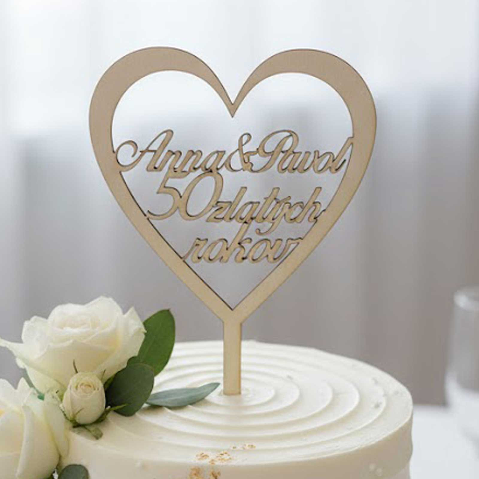Dřevěný špíz s nápisem „50 zlatých roků“ je dokonalým doplňkem na dort k tomuto významnému jubileu. Jeho přírodní materiál a precizní provedení dodají dortu rustikální a zároveň elegantní vzhled. Šířka 15 cm zajistí, že špíz bude dominantním prvkem, který upoutá pozornost všech hostů.