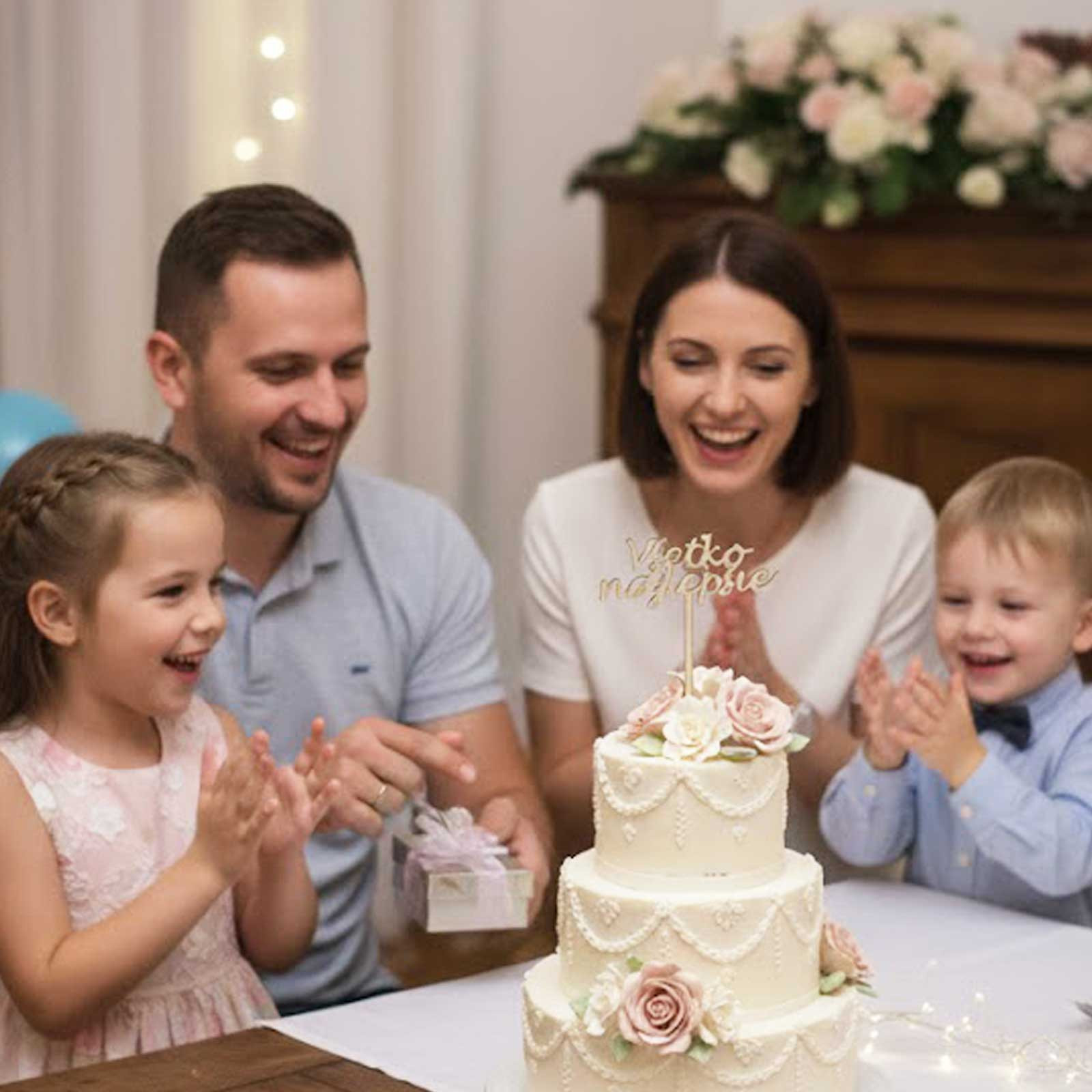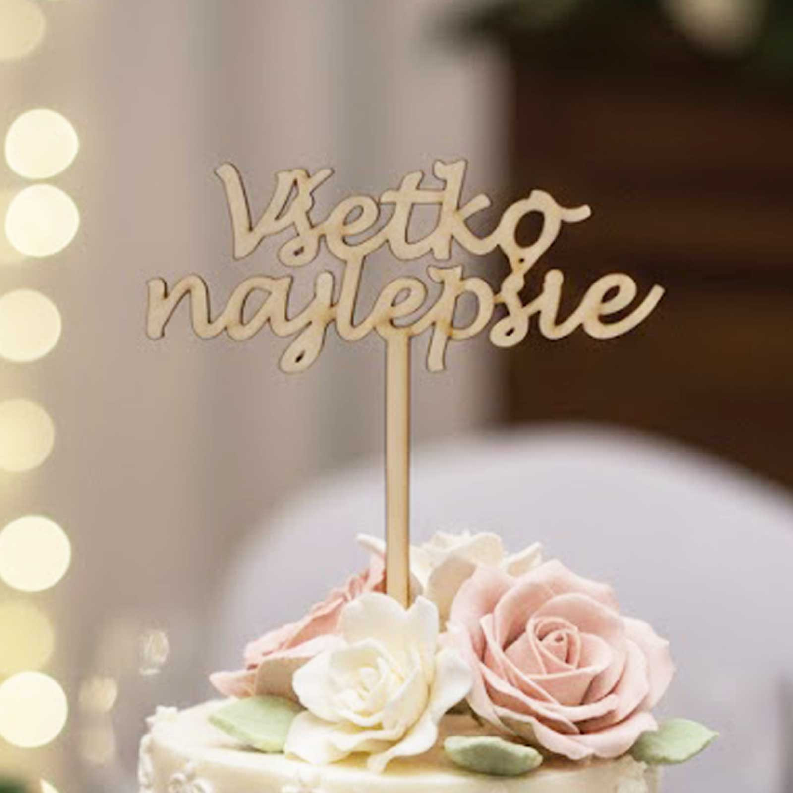 Dřevěný zápich s nápisem "Všechno nejlepší" je přesně tím prvkem,