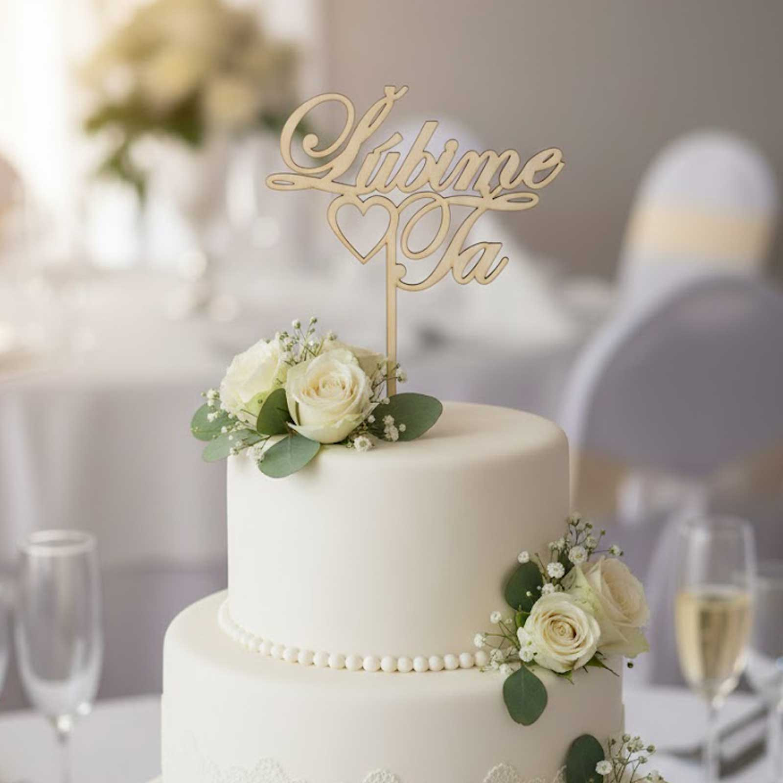 Dřevěná ozdoba na dort "Milujeme Tě": Dokonalý doplněk pro tvou dort